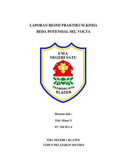 Download laporan praktikum sel volta dan landasan teori mengenai sel volta dan sel elektrolisis lengkap dengan pembahasan dalam format pdf. Laporan resmi praktikum kimia beda potensial sel volta disusun oleh : Your email address will not be published. Faiz afnan n 07 / xii ipa 4 sma negeri 1 klaten tahun pelajaran 2013/2014 i. Leave a reply cancel reply.